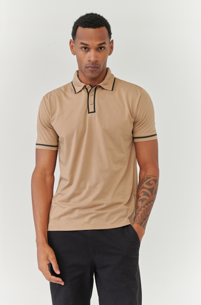 Este modelo tiene un lindo diseño liso con cuello combinado. Esta confeccionado en jersey y su calce es regular. Es de estilo urbano y deportivo y la puedes usar en cualquier ocasión.