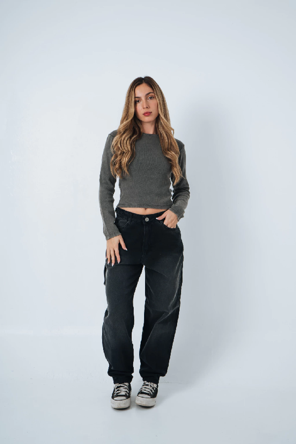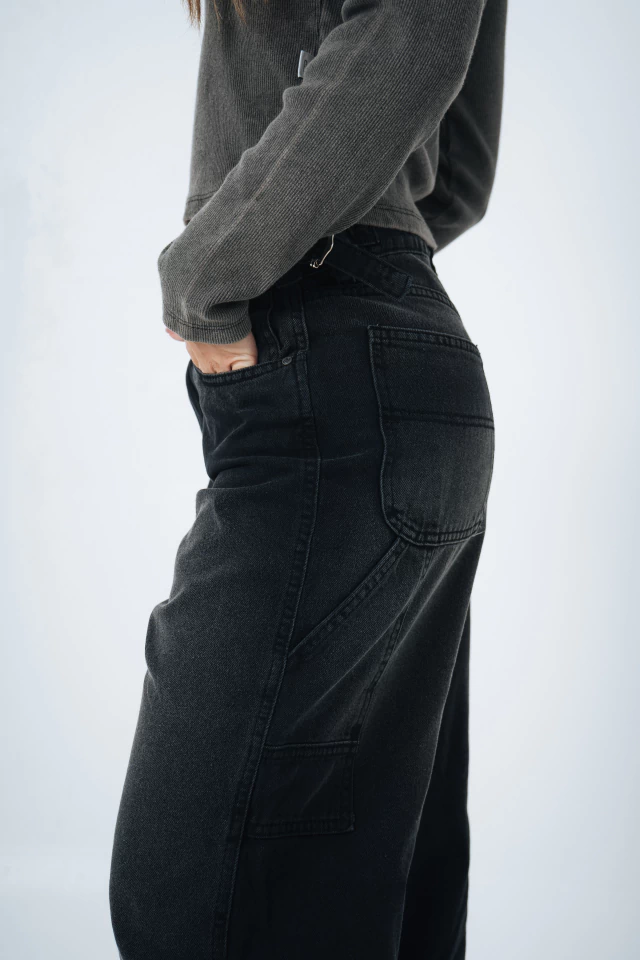 Los balloon jeans han emergido como una de las tendencias de pantalones más distintivas y cómodas. Caracterizados por su silueta amplia y redondeada en las caderas y los muslos, que luego se estrecha hacia el tobillo. Estos pantalones ofrecen una alternativa moderna y con mucho estilo a los clásicos jeans rectos o ajustados. Este modelo es particular tiene un lavado gris localizado, con un bolsillo carpintero. Esta confeccionado en denim rígido.