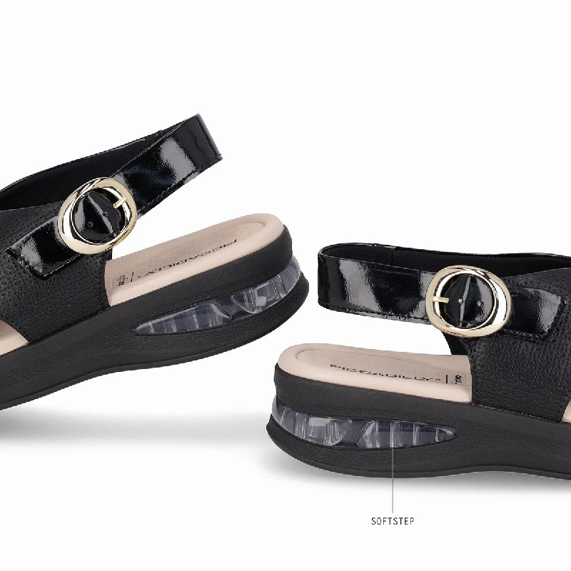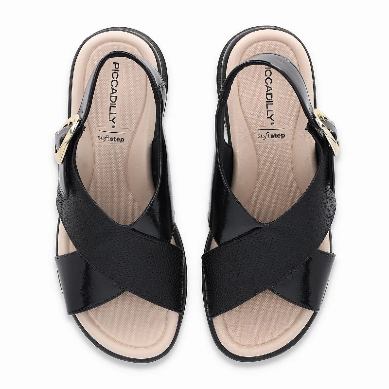 Descubre la comodidad combinada con el estilo con la sandalia Piccadilly, perfecta para aquellos que buscan practicidad sin renunciar a la elegancia. Ideal para el uso diario, esta sandalia ofrece sujeción y ligereza gracias a la tecnología Softstep en su entresuela, que proporciona una amortiguación y absorción de impactos superiores. Su diseño en piel sintética con acabado barniz le da un aspecto moderno y sofisticado, mientras que la hebilla ajustable garantiza un ajuste perfecto y seguro. La plantilla suave aumenta la comodidad, lo que convierte a esta sandalia en una opción ideal para largas caminatas o la vida cotidiana en la ciudad. Con suela antideslizante, ofrece estabilidad y seguridad en cualquier superficie.
