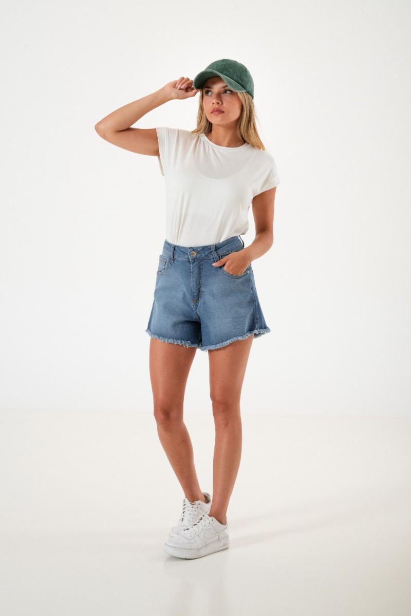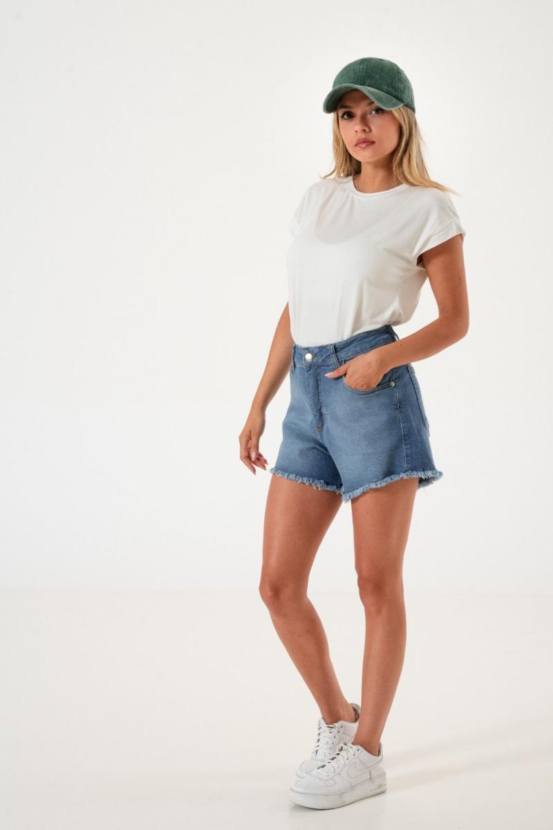 Short IVETTE LIGHT BLUE, este modelo tiene un lindo diseño, es color azul con localizado con ruedo desflecado. Esta confeccionado en denim elastizado y su calce es regular. Una prenda que le sumara a tu outfit dando una linda silueta.